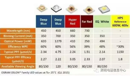據了解,過去幾年來,歐司朗光電半導體為植物照明產品組合增添了新封裝,并將效率提升高達20%。主要是增加了一款120° Oslon產品,使得450nm(深藍光)、660nm(超紅光)和730nm(遠紅光)版本除了80° 和150° 外又多了一個選擇。這一方案組合構成針對各種植物定制不同照明方案的基礎,可根據各種植物的具體需求調整光線。