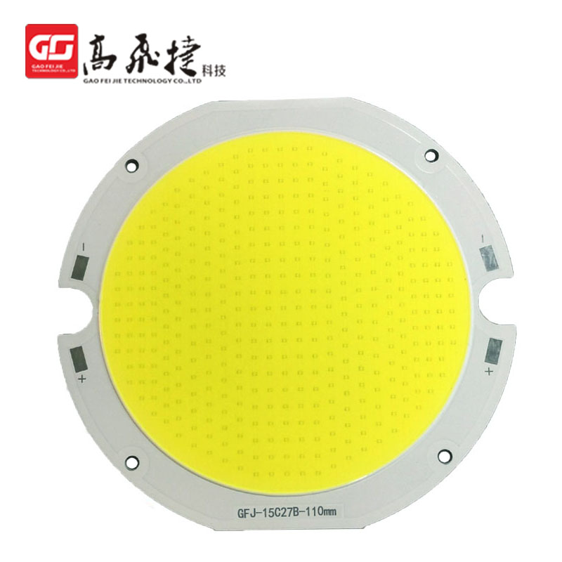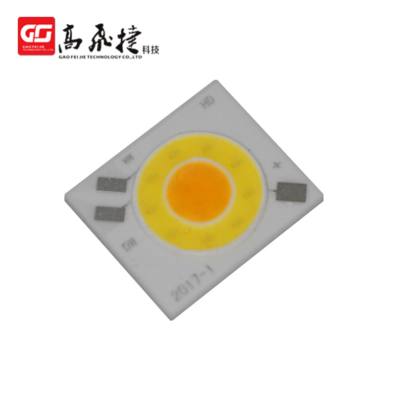 COB封裝“COB光源模塊→LED燈具”,可將多顆芯片直接封裝在金屬基印刷電路板MCPCB,通過基板直接散熱,節(jié)省LED的一次封裝成本、光引擎模組制作成本和二次配光成本。在性能上,通過合理的設(shè)計(jì)和微透鏡模造,COB光源模塊可以有效地避免分立光源器件組合存在的點(diǎn)光、眩光等弊端;還可以通過加入適當(dāng)?shù)募t色芯片組合,有效地提高光源的顯色性。