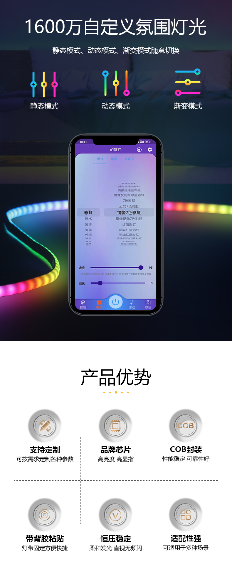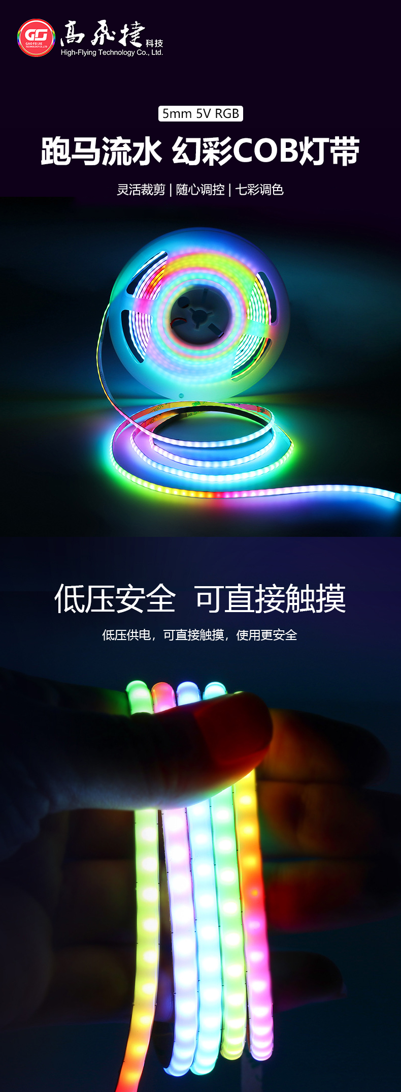 • 5mm幻彩跑馬cob燈帶