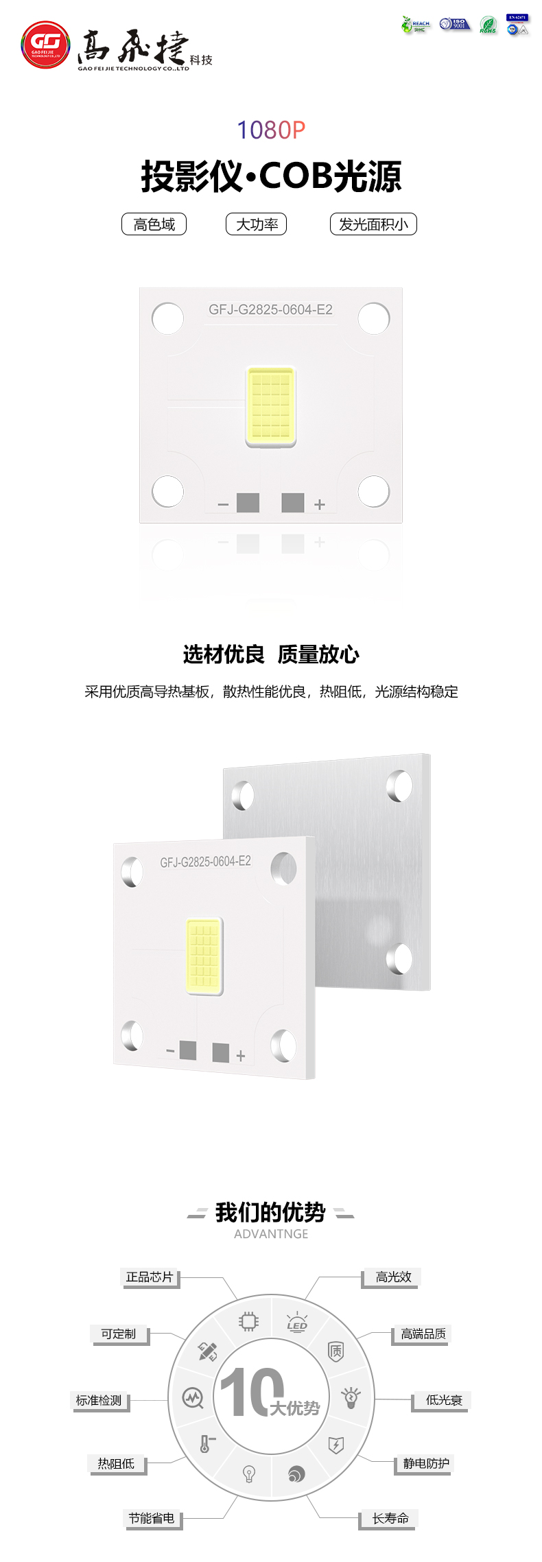 熱門標簽: 微型2寸投影儀倒裝集成COB光源18V 30W