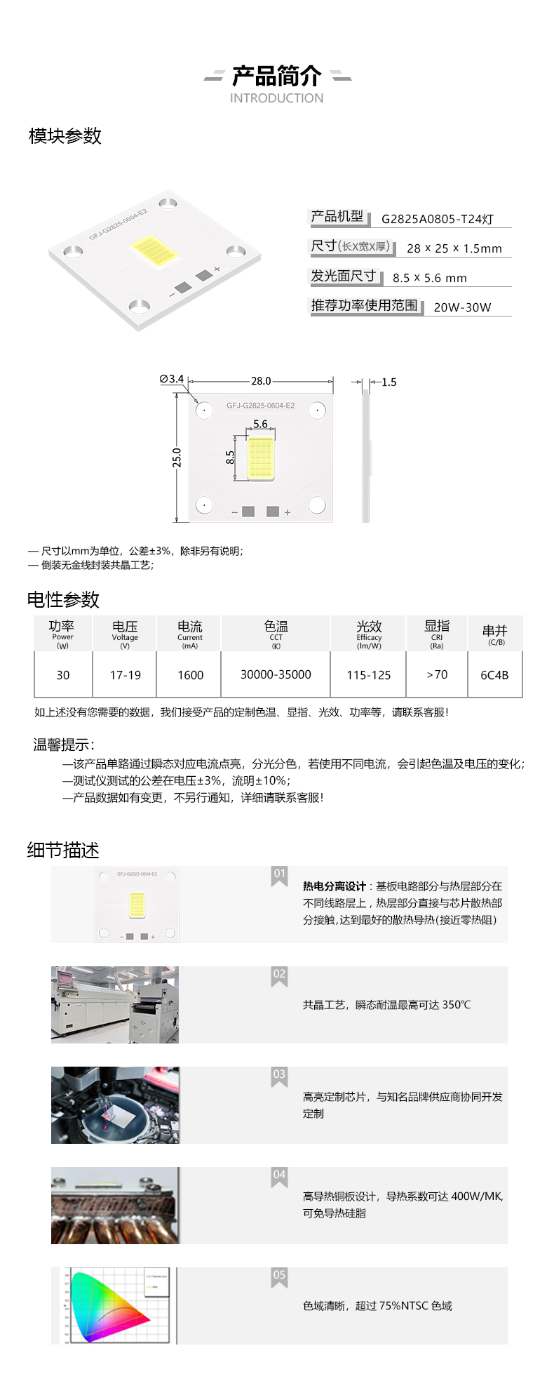 • COB光源-投影儀光源G2825A0805-30W-6C4B