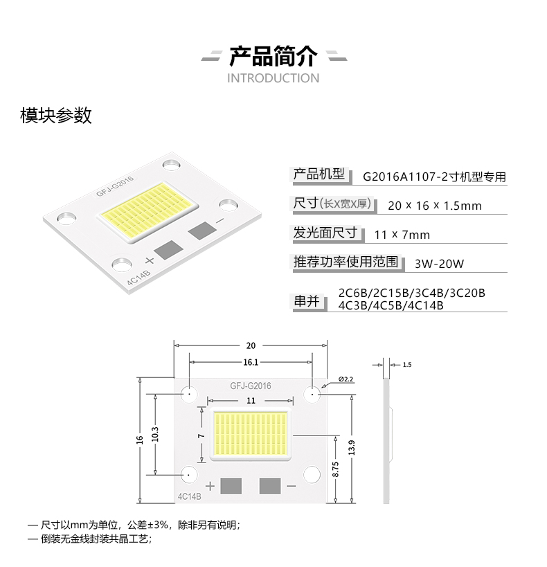 COB光源-雙色變光系列G1616-16C-5W
