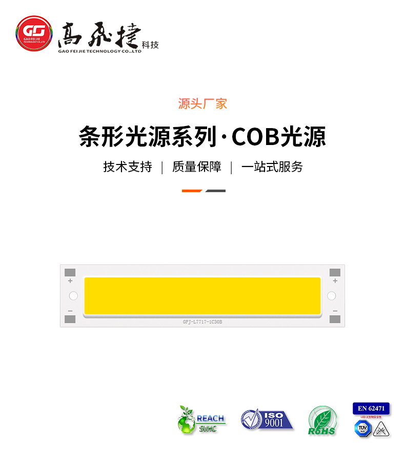 熱門標簽: 高飛捷長條系列高功率高亮度倒裝COB光源77.1*16.8mm