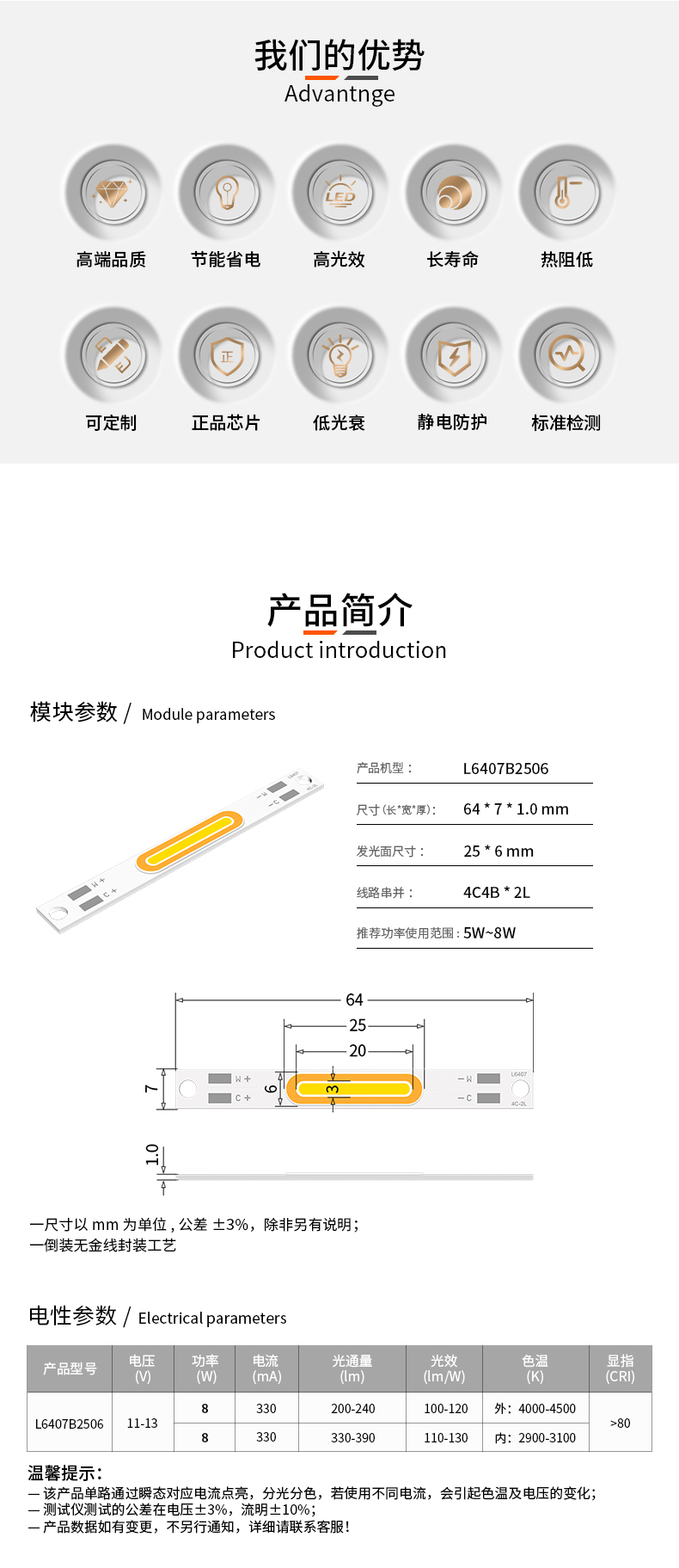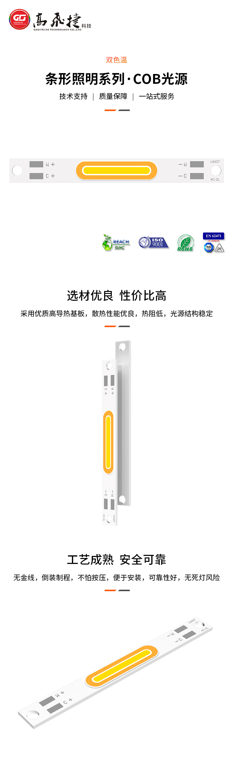熱門標簽: 深圳高飛捷科技高功率高光效雙色溫長條系列倒裝COB光源64*7mm
